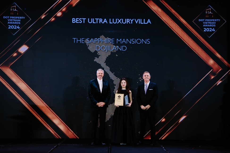Cũng tại DOT Property Vietnam Awards 2024, dự án The Sapphire Mansions – một siêu phẩm bất động sản hạng sang của DOJIRUBY đã xuất sắc được vinh danh là “Dự án biệt thự siêu sang tốt nhất Việt Nam 2024”.